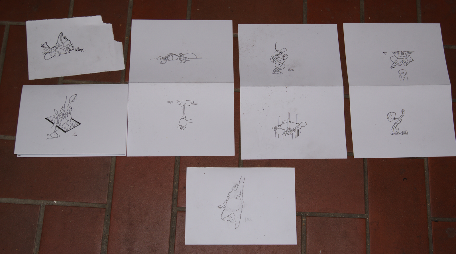 und hab mal mit einer roughen konzept zeichnung für ein comix begonnen. wobei richard eingeweidetrennung sein handwerk am studieren ist.